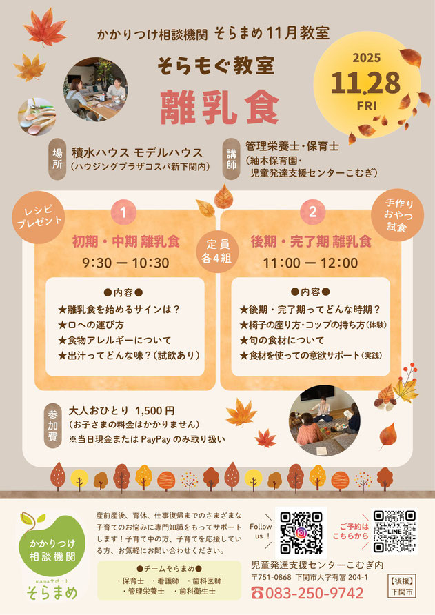 かかりつけ相談機関そらまめ11月開催の教室のお知らせです。